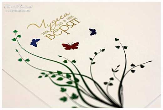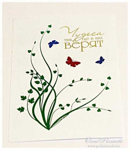– на надпись накладываем золотую фольгу, бабочки будут синие и красная: