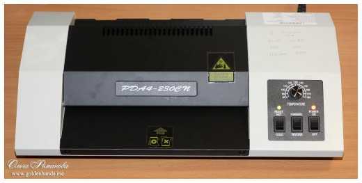 Теперь о ламинаторе. Наиболее качественно фольгирование проходит на ламинаторе с горячими валами при температуре около 140-150°С. Температурные и скоростные характеристики могут меняться в зависимости от используемого ламинатора, фольги, бумаги и принтера и подбирается для каждого случая индивидуально. В моём случае минимальный процент брака получается при температуре 150 °С. Для золотой фольги пришлось ставить чуть больше, а вот серебро оказалось капризным и температуру наоборот пришлось снизить до 110°С.