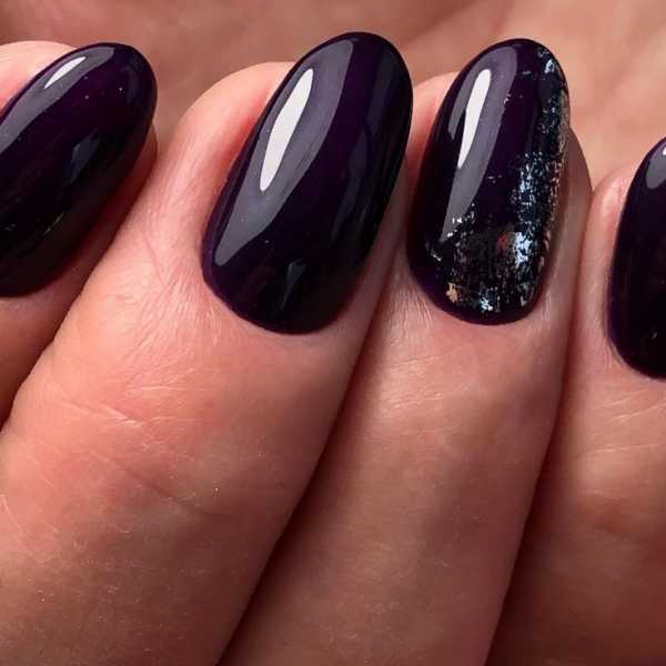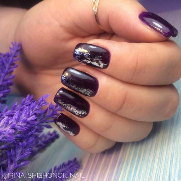 Стильное сочетание баклажанового оттенка и серебряной фольги.