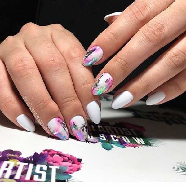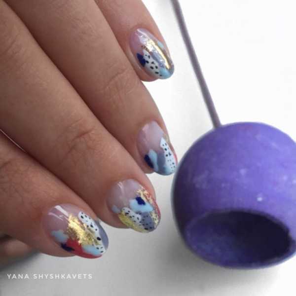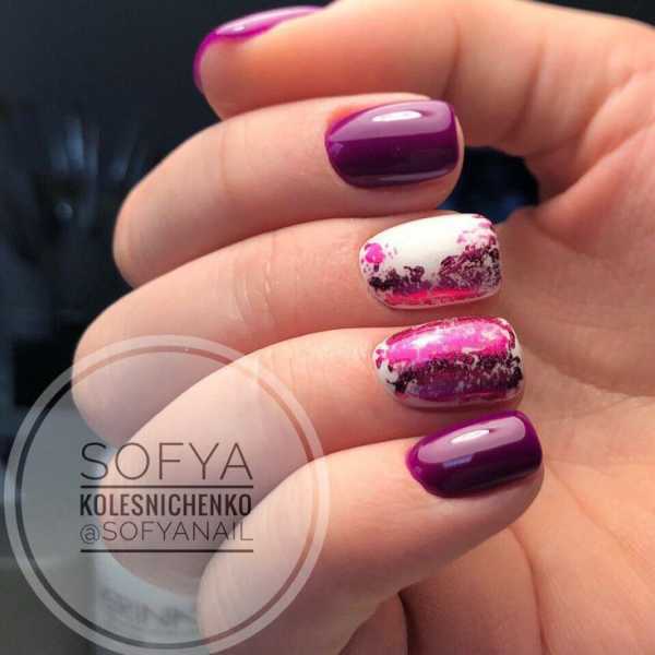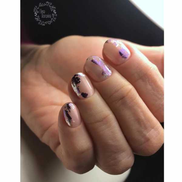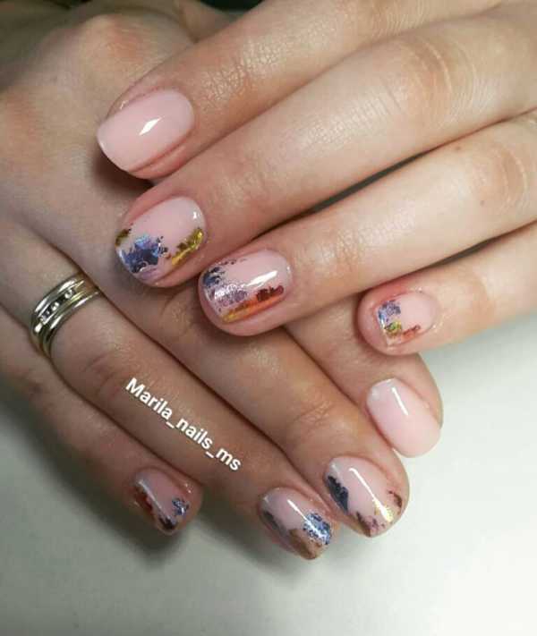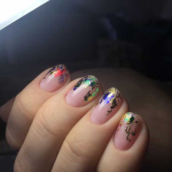 Маникюр с отрывной фольгойСамые креативные дизайнеры рисунков для ногтей категорически против первого способа и предлагают сделать все с точностью до наоборот.