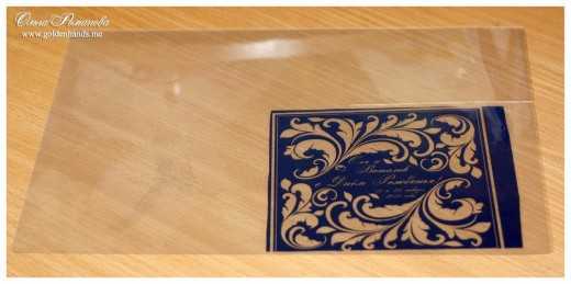 Сделаем в комплект к поздравительной открытке ещё и поздравительную коробочку с прозрачной крышкой. Для этого остаток фольги положим в плёнку и за ламинируем: