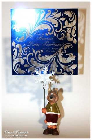 Коробочку использовала уже готовую. Обклеила её синей бумагой Imitlin Fiandra 125 гр/м2 а на верх приклеила за ламинированную картинку. Вот такое небольшое поздравление у меня получилось: