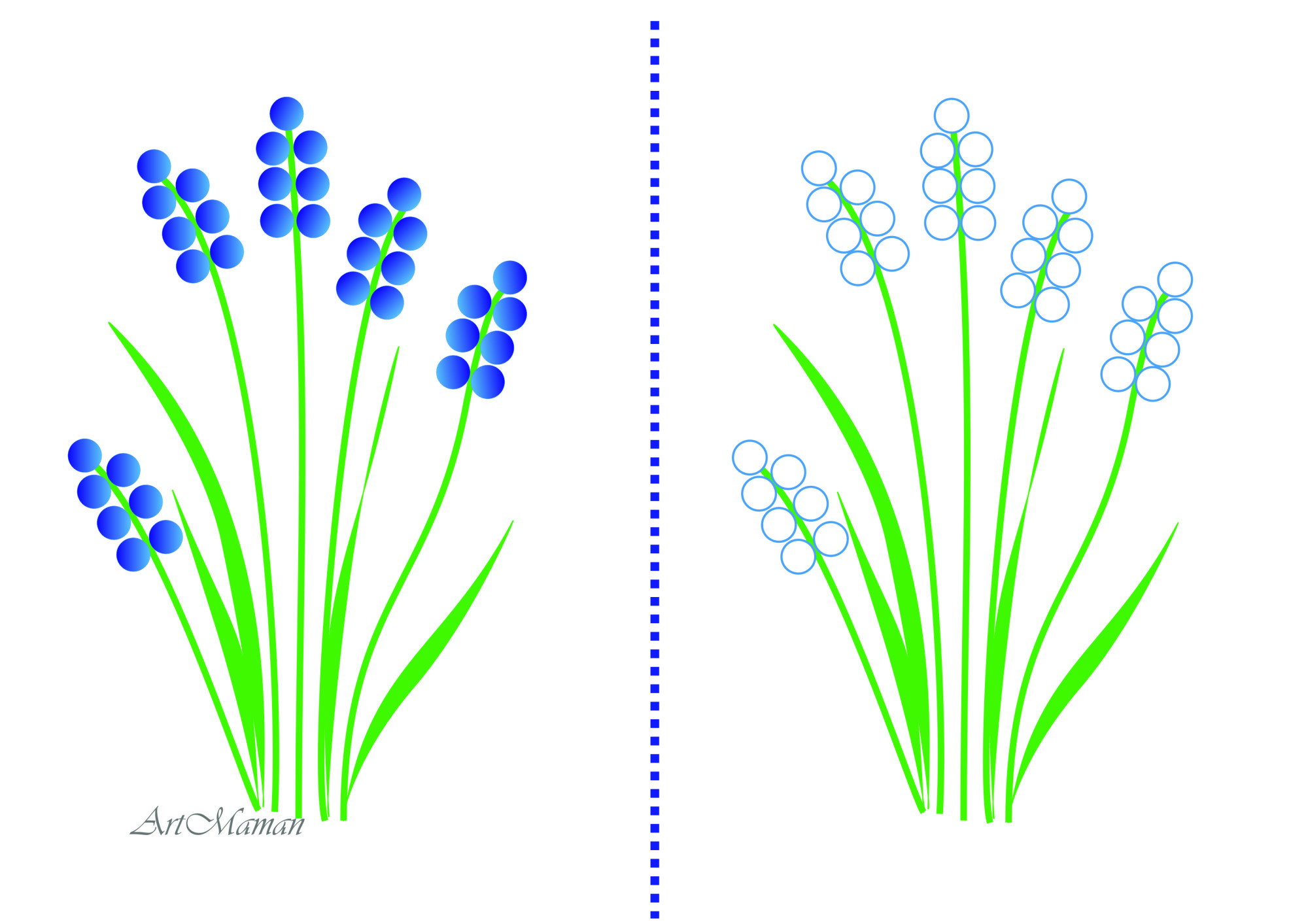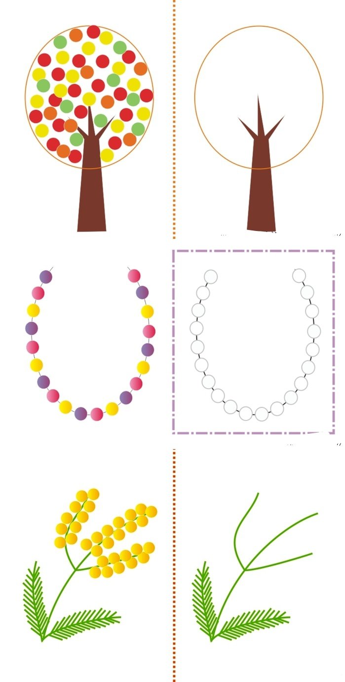 Детям постарше даются задания сложнее. Увеличивается количество цветов. Это позволит юным художникам проявить воображение.