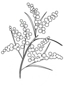 На левой веточке прорисовываем тонкие и мелкие листочки, которые должны быть у мимозы. Делаем это небольшими штрихами кисти.