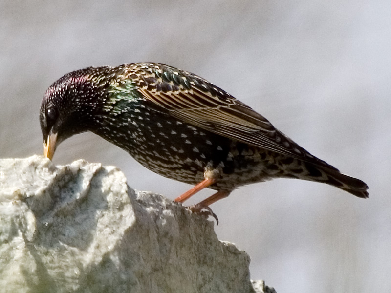 Это, безусловно, самый вероятный вид скворцов, встречающийся в Британии. Однако может казаться очень похожим на Безупречный скворец.Весной и летом взрослых особей легче всего отличить, поскольку они все еще остаются пятнистыми, с металлическим блеском зеленого и пурпурного, с тускло-розовыми ногами и чуть более длинным и тонким клювом. Осенью и зимой у всех возрастов и обоих полов много пятнистых пятен. У самцов в летнем оперении больше блеска и пятен помельче, чем у самок.