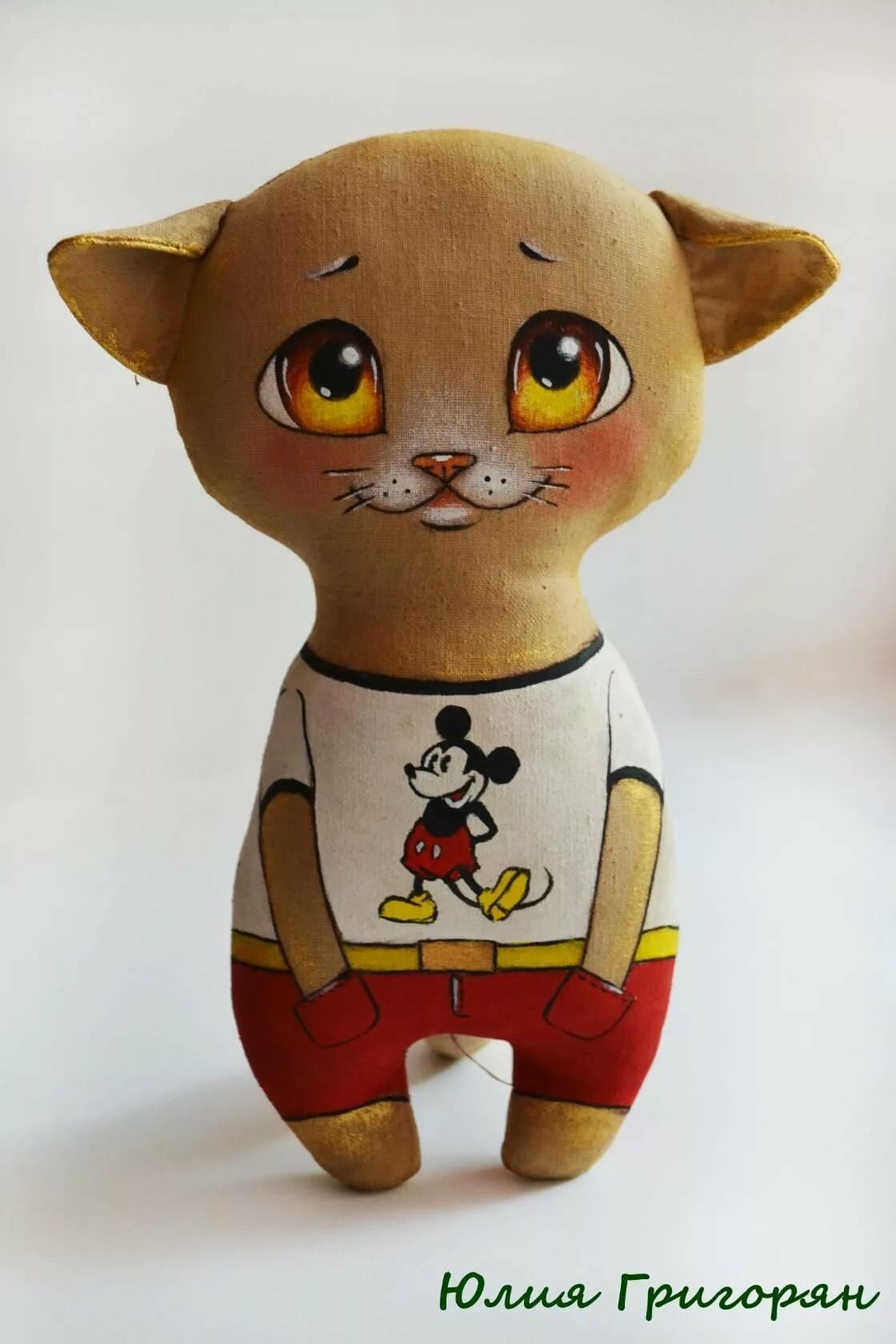 Можете дополнительно затонировать некоторые области игрушки пастельным мелком и сделать блики белой краской. По ушкам, лапкам и сердечку нужно проводить почти сухой кистью.