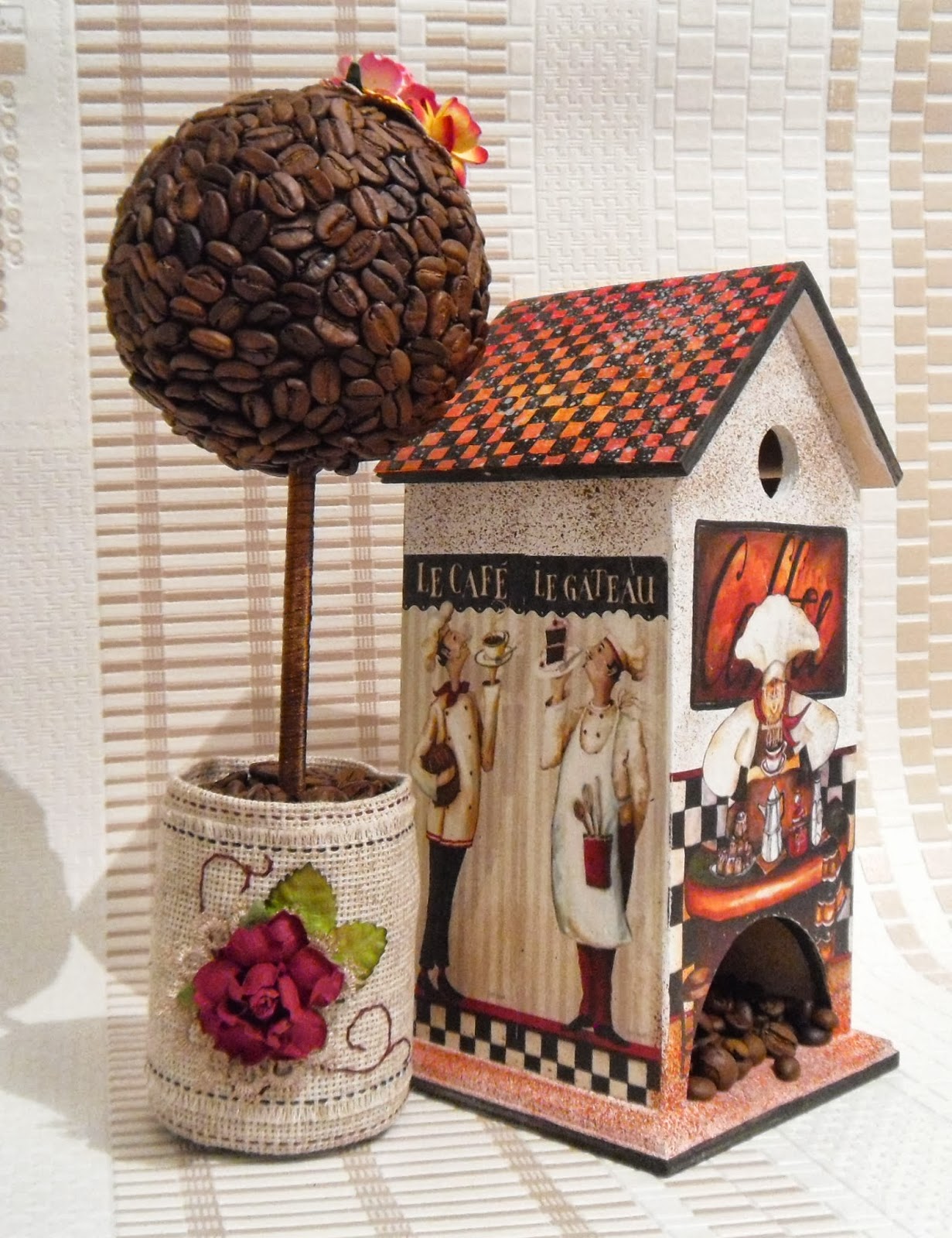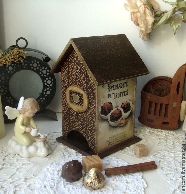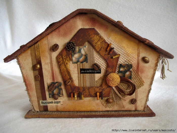 Сначала покажу кофейный-птичий домик со всех сторон.