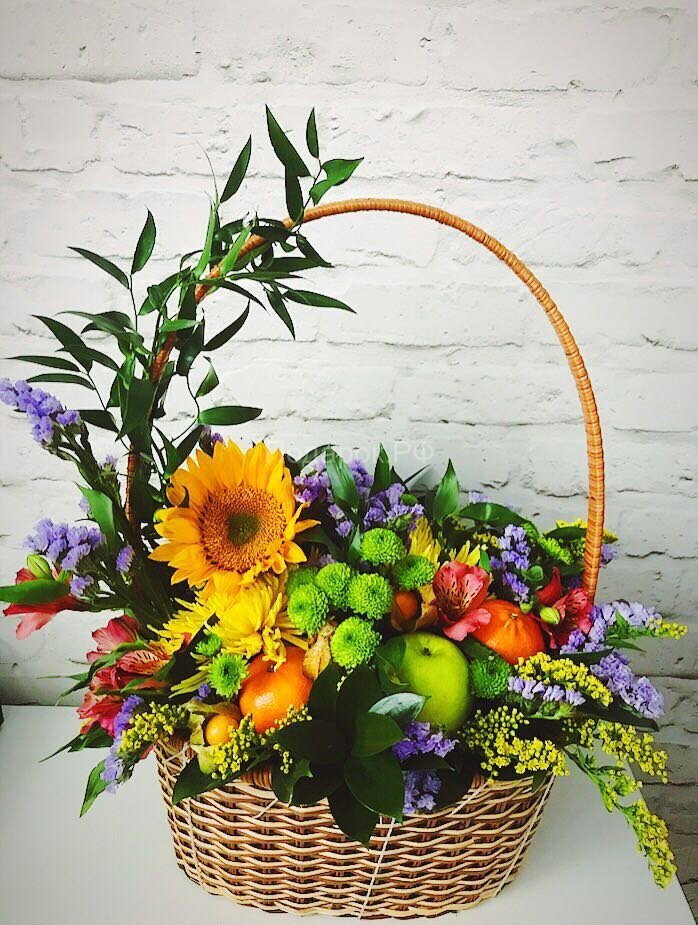 Цветы в корзине – это больше, чем просто букет. Такой подарок очень символичен, он станет украшением любого праздника.Корзина с цветами олицетворяет достаток и является пожеланием успеха и процветания. Композиции цветов в корзинах могут включать в себя самые невероятные комбинации из различных растений. Строгие розы отлично уживаются с нежными лилиями, яркими хризантемами и полевыми цветами, а дополнением ко всему этому великолепию служит экзотическая зелень. Ценители классики могут заказать доставку корзины с цветами одного вида. Сами корзины также могут быть различного цвета и размера. Их изготавливают из пшеничной и ржаной соломы, рогозы, ивовых и ореховых прутьев, виноградной лозы, бамбука и тростника.