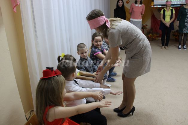 Для участия в игре выбирают одного малыша и 5 мам, одна из которых его родная. Ребенку завязывают глазки и предлагают определить свою мамочку, ощупав руки 5 родительниц. Если участник найдет свою любимую мамулю, стоит наградить его вкусной конфетой. Затем игру можно повторить со следующим участником. Количество повторов ограничивается исключительно выделенным для конкурс временим.