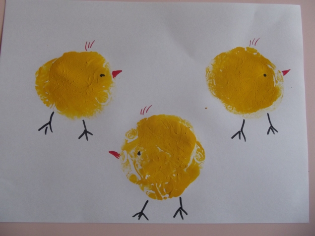«Тычком» можно рисовать с детьми любого возраста. Этот способ используется для получения необходимой фактуры рисунка: пушистой поверхности. Потребуется гуашь, ватные палочки, бумага любого цвета и размера. Ребёнок опускает в гуашь ватные палочки и ударяет ими по бумаге, держа вертикально. При работе палочки в воду не опускаются. Таким образом, заполняется весь лист, шаблон.