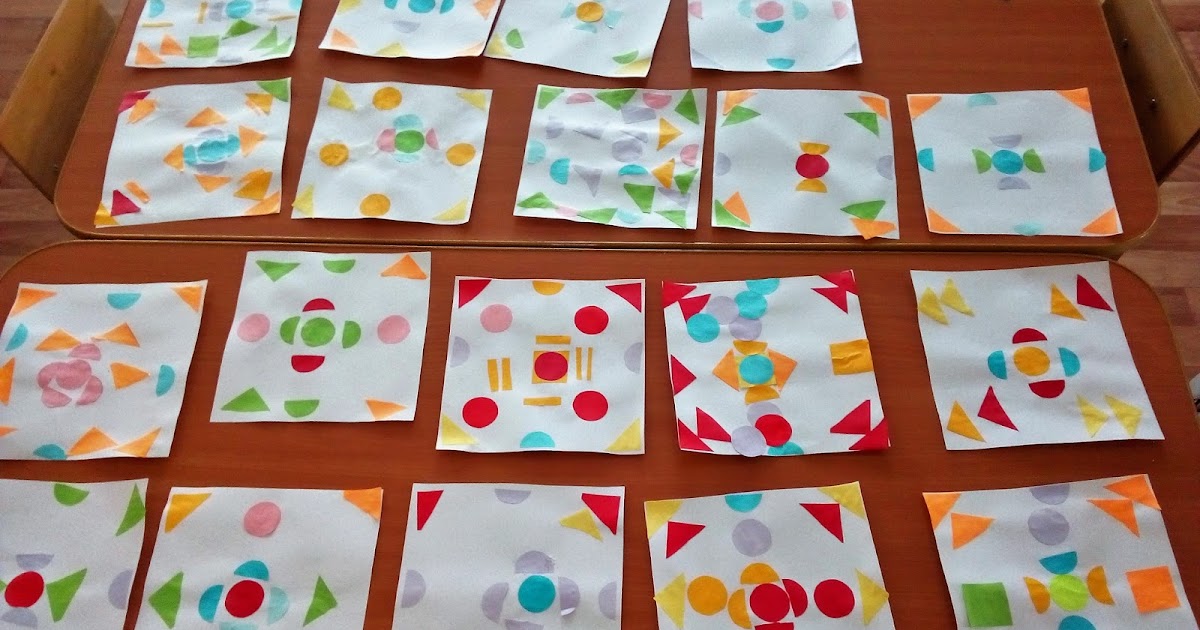 -учить детей составлять узор на квадрате, заполняя углы и середины;