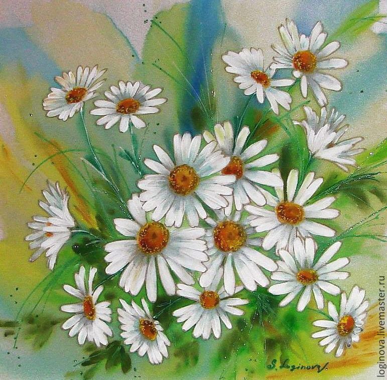 Воспитатель:-Сегодня на занятии, я предлагаю вам, украсить платочек для мамы ромашками. Ромашка-это символ любви, искренности. Поэтому свою любовь к маме мы выразим, с помощью платочка.
