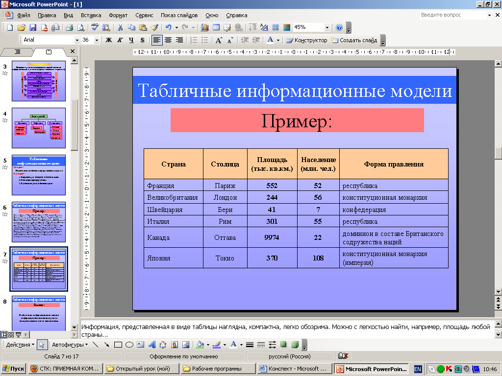 Урок информатики в 7 классе.