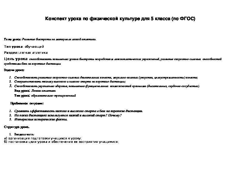 План урока: