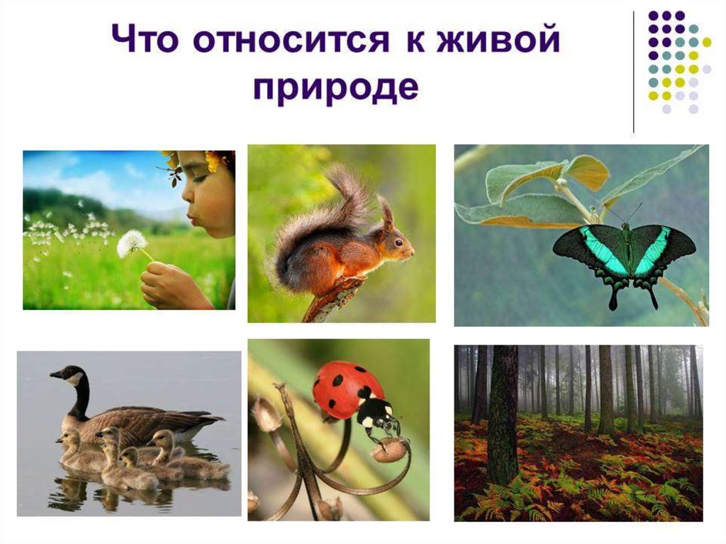 природе? Почему? Докажите. К живой природе можно отнести то, что живет и дышит, размножается и погибает. Это человек, животные, растения.