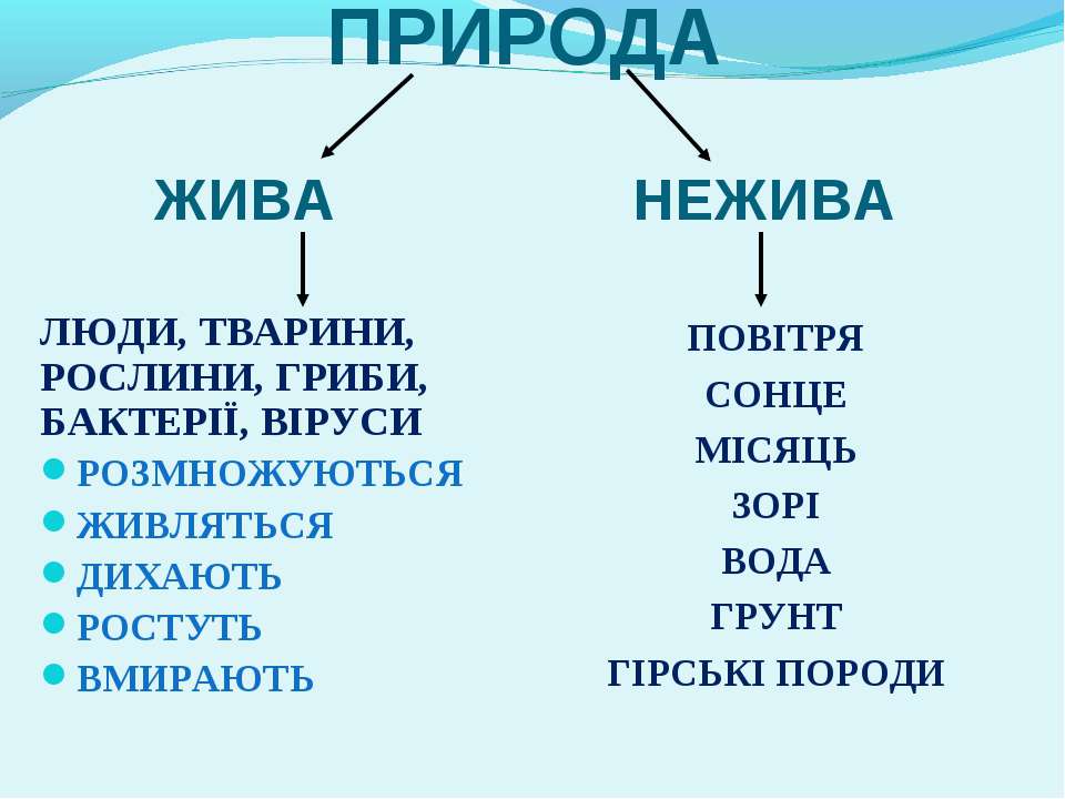 – Всю природу Земли можно делить на 2 больших мира: мир живой и мир неживой природы.