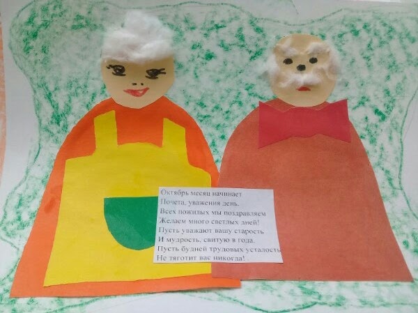 Уместным к подарку в День пожилого человека станет открытка, сделанная своими руками. Для этого можно выбрать картон или обычную цветную бумагу. Вариации открыток существует очень много. Интересным вариантом станет поделка, в которой края будут не ровные, а например, в виде волны. Внутри открытки можно прикрепить поздравительную фотографию или написать тёплые слова от руки.