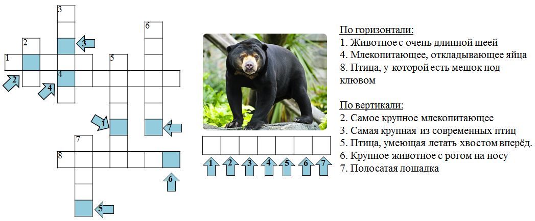 Так, например, может выглядеть Crossword для дошкольников на тему «Животные»: