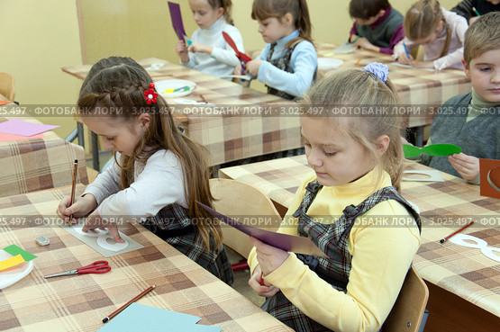 учащихся через работу с бумагой, картоном, тканью, нитями и другими