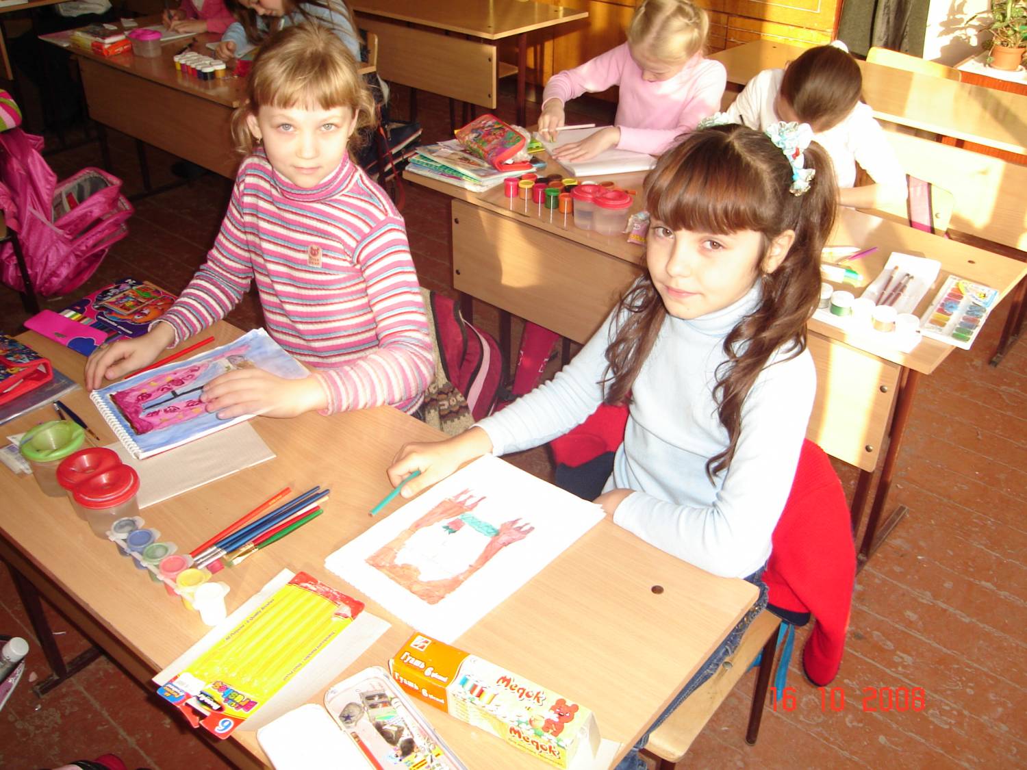 Я начала учиться в школе с 5 класса, но на примере своей младшей сестры знаю, что детей уже с 1 класса начинают приобщать к искусству. Например, в 3 классе есть интересный предмет «бумажная пластика». Дети выбирают сказку и целый год готовятся к представлению, делая костюмы и декорации из одной только гофрированной бумаги. Специализированные предметы в нашей школе — это черчение и МХК, но на них отведено не так много времени, как на ИЗО. В начальной школе уроки ИЗО занимают 4 часа в неделю, начиная со средней школы это время увеличивается до 8 часов официальных и 6 часов факультативных занятий (один факультатив платный, другой бесплатный). Уроки проходят в больших аудиториях, рисуют преимущественно на мольбертах, в достаточно неофициальной обстановке: дети сидят и рисуют, а учитель ходит между мольбертами и дает советы каждому учащемуся. В 9 классе проходит экзамен по рисунку, без которого в 10 класс не переводят. В 10 классе проходит защита проектов — каждый делает проектную работу на любую тему и в конце года защищает ее, без этого не переводят в 11 класс.