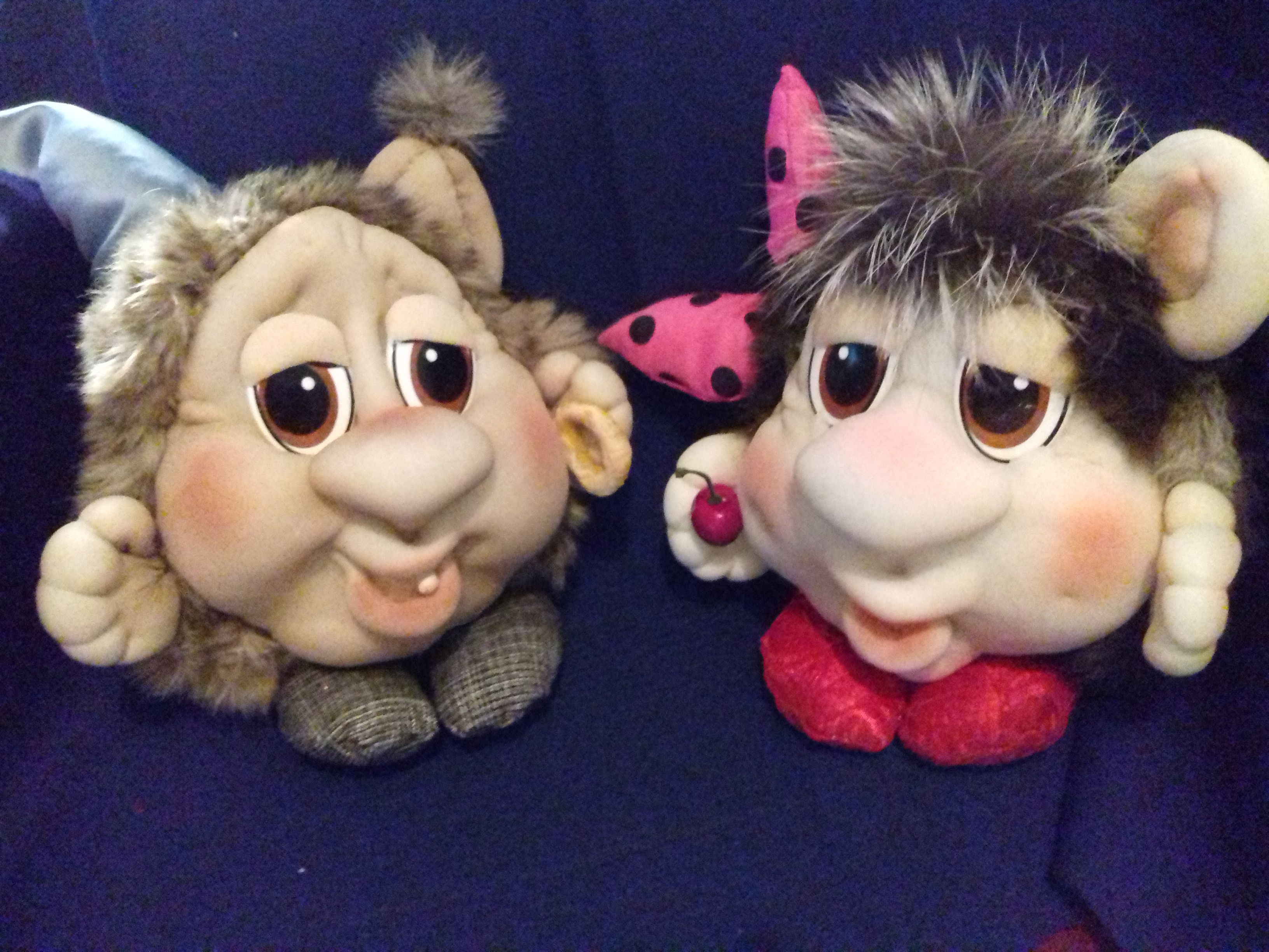 Принцип выполнения таких игрушек кроется в самом названии: голова, очень объемная задняя часть, ручки и ножки. Особенность попиков в том, что отдельные части не собираются воедино, а пришиваются к одежде. Подобные модели отлично смотрятся на стене как декоративная часть интерьера, их дарят как забавный талисман или оберег.