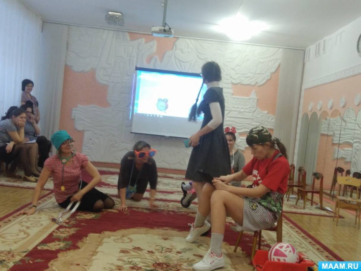 Цель: закрепить знания участников игры об особенностях общения с ребенком, упражнять в понимании психических состояний детей, умении целесообразно выражать свое отношение к ним с помощью вербальных и невербальных средств общения. Развивать творческие способности и любовь к профессии.