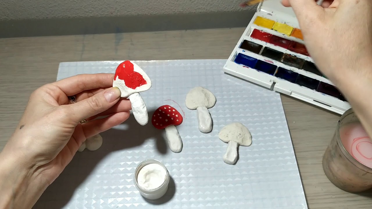 4. В обще-то, на фото ясно видно, как именно красить такие грибочки. Шляпка-донышко лучше всего подходит для мухомора, как выглядит этот гриб, знают все.