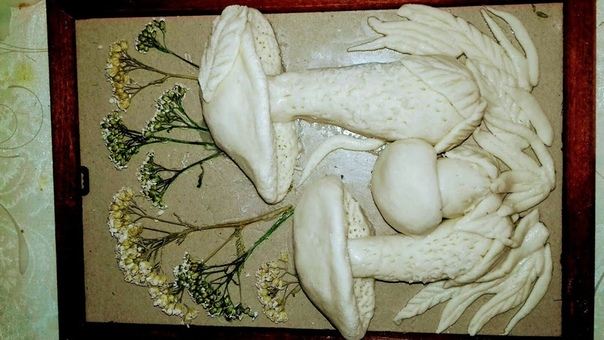 Но это того стоило! Результат потом был фантастически красив! В общем, чем больше в грибе клейстера, тем он дольше сохнет, но тем он прочнее!