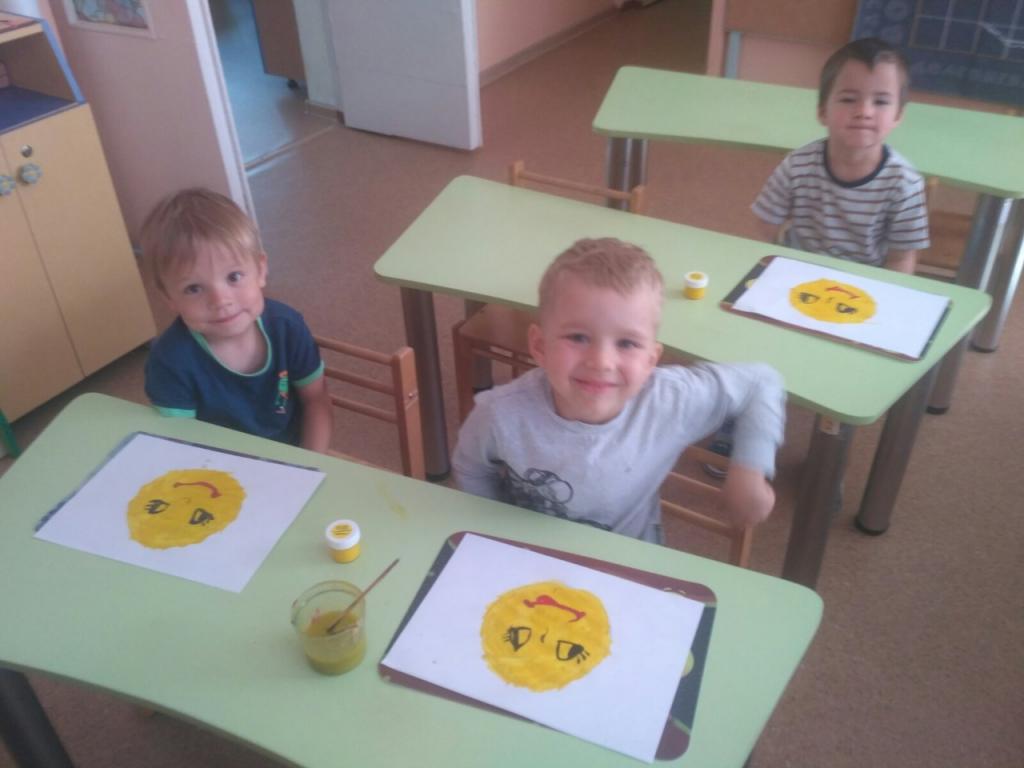 Воспитатель: – Ребята, чтобы Колобок получился веселым, что нужно сделать ему?