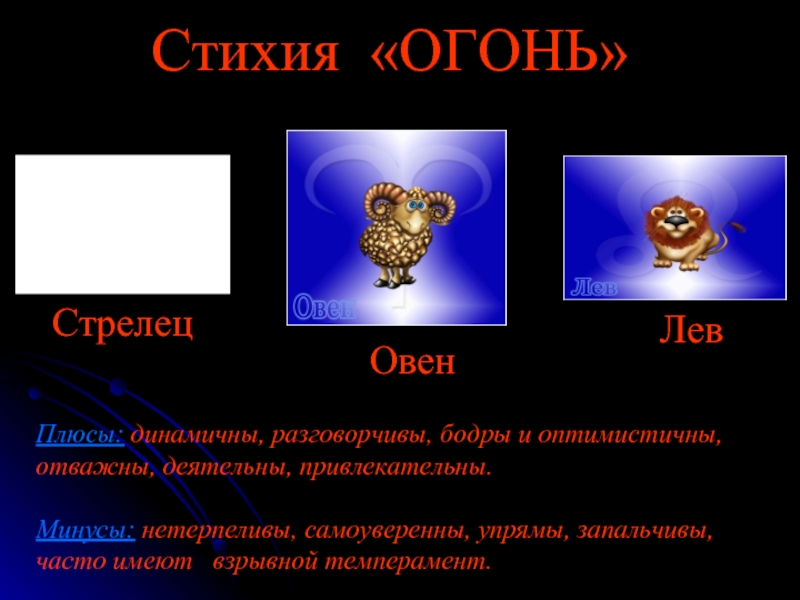 Основные характеристики знака Лев — неиссякаемая энергия, темперамент и власть. Лев огненный знак, которым управляет Солнце.
