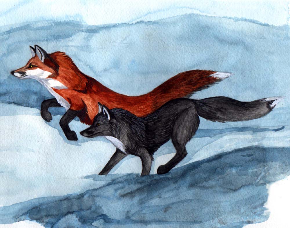 Бегала, бегала лиса и поймала утку. Несет домой, а навстречу ей волк: