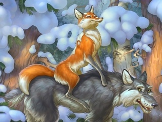 Вот и пошли кот с лисою. Медведь увидел их и говорит волку: