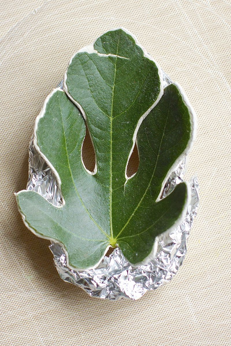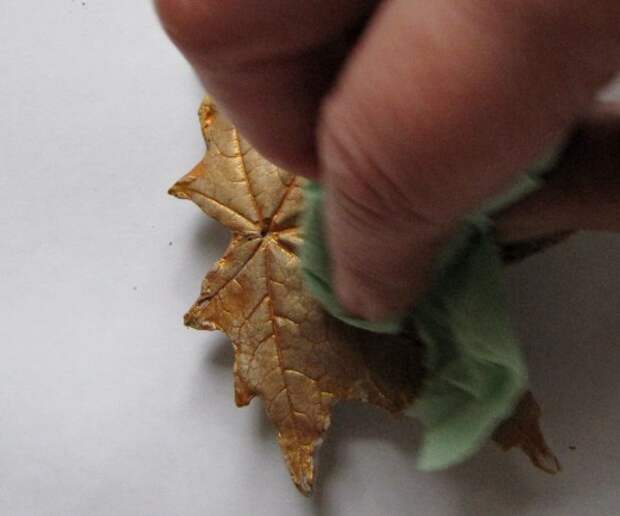 Для того, чтобы лист не получился плоским, я подкладываю под него комочек фольги, придав ему форму листа.