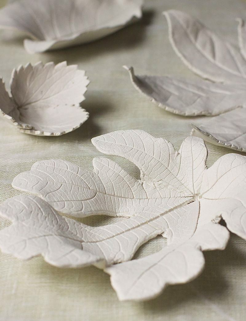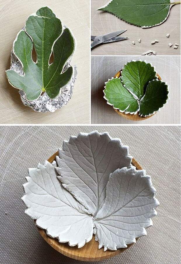 Такие гипсовые листья могут стать отличными чашами или вазами для мелочей, пепельницами, подставками под ароматические палочки и столовые приборы… Закрепив лист в раме на красивой подложке, вы получите необычную «картину». Несколько таких «картин» – и гипсовый гербарий заполнит стену. Листьями можно оформить раму для зеркала или основание настольного светильника. Из них же можно собрать потолочную розетку. Это лишь несколько примеров использования слепков, вашей фантазии тут есть где разгуляться!