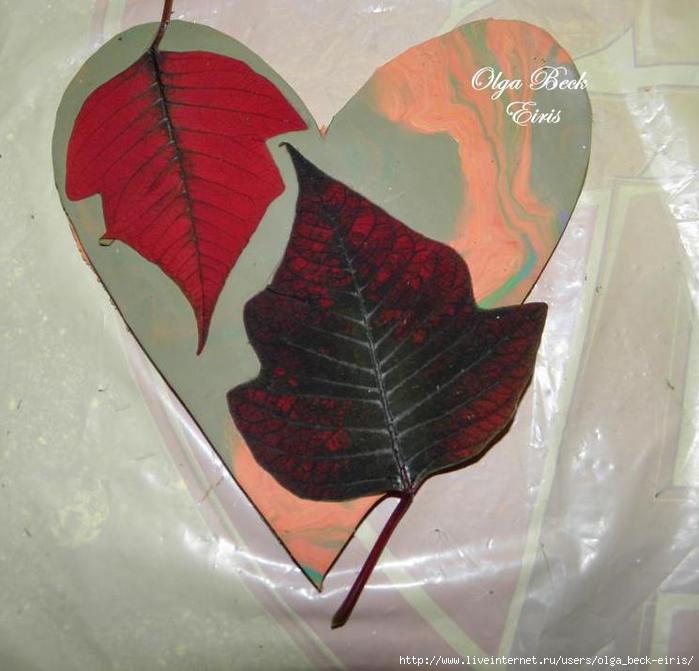 Вот второй способ. На кленовом листочке он мне не очень понравился. На лопухах такой способ выглядит намного лучше. Наверное потому, что лопухи более фактурные.