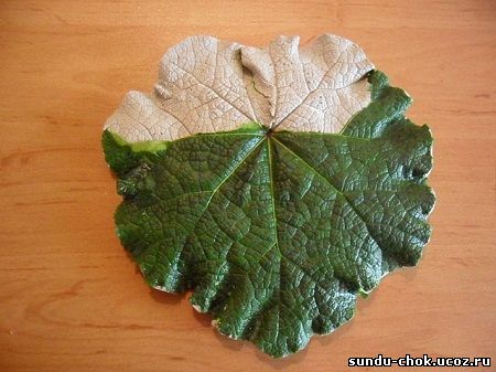 Итак, выбираем самые красивые и самые рельефные листья и раскладываем их вверх тыльной стороной вверх. Не перепутайте!Именно обратная сторона имеет более рельефную поверхность с выпуклыми прожилками.