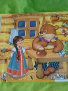 Одна из самых любимых детьми сказок «Маша и медведь». Рассказывая ребенку сказку, обязательно рассмотрите иллюстрации к ней, задайте малышу вопросы по каждой картинке. Можно поиграть в сказку, малышу поручите роль Машеньки, а сами побудьте Медведем. Когда ребенок хорошо запомнит сказку можно обыграть ее, используя настольный театр, фланелеграф или кукольный театр. Благодаря театрализованной игре отлично развивает память, связную и диалоговую речь, выразительность речи.