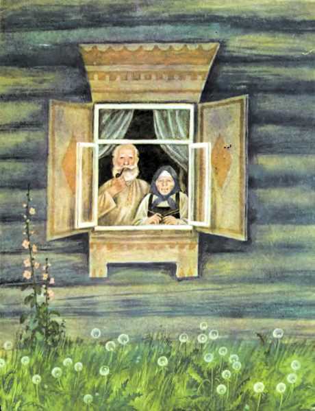 Вышли тут дедушка да бабушка к воротам. Видят- короб стоит.