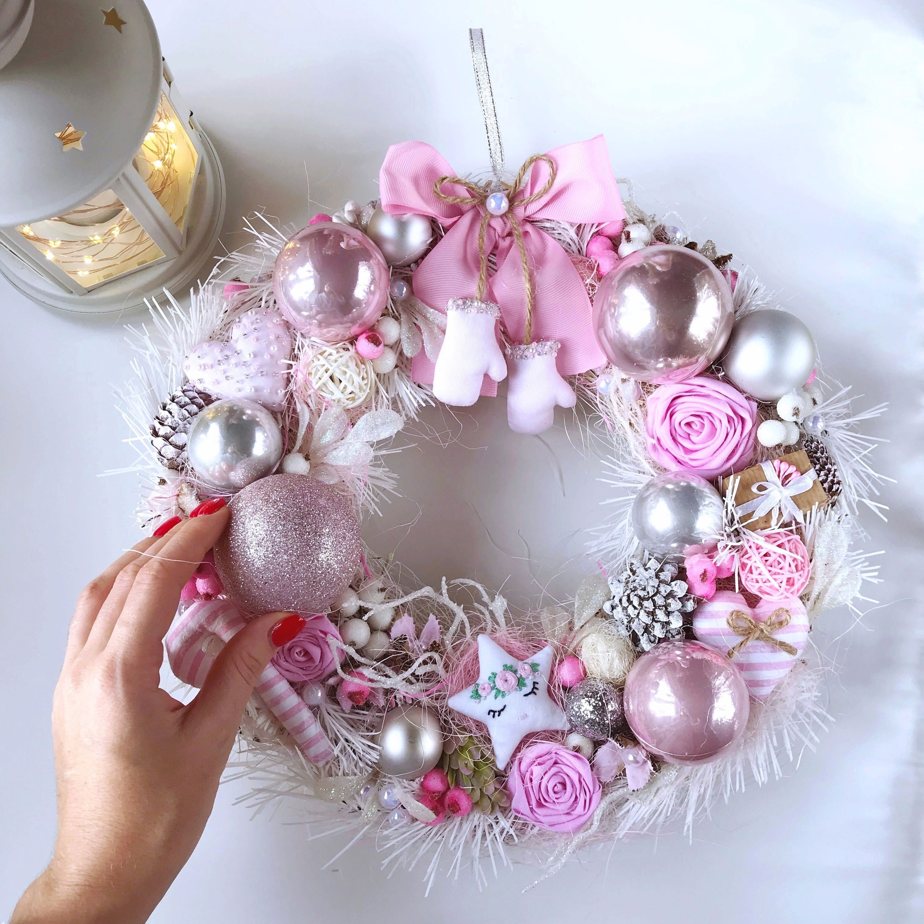 И тут может быть множество творческих вариаций. В этой идее в венок добавлены святящиеся огоньки.