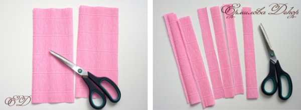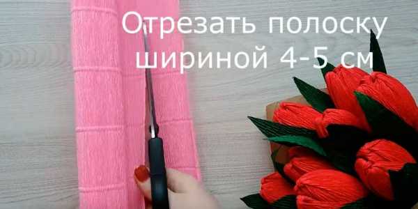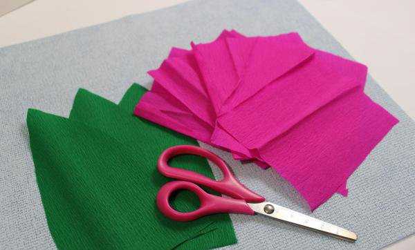 Для серединки тюльпана из розовой гофрированной бумаги вырежьте отрезок длиной 6 и высотой 8 см.