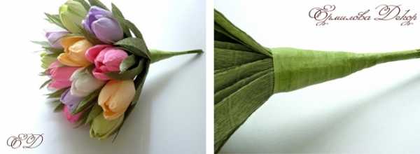 Из таких тюльпанов получаем красивый букет. Перевязываем его лентой или придумываем более оригинальную упаковку. Некоторые идеи оформления я подскажу в самом конце нашей беседы.