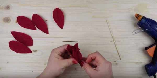 Края лепестков должны накладываться один на другой. Закручиваем их.
