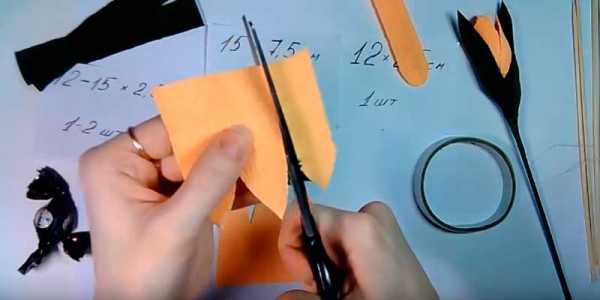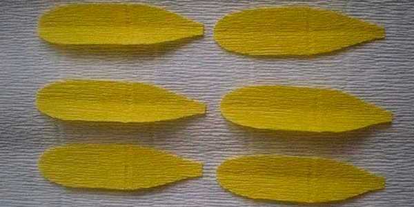 Каждой части придаем форму листика: снизу сужаем, оставляя ширину 1-1,см, сверху срезаем и закругляем углы.