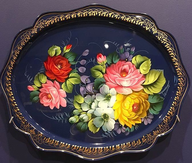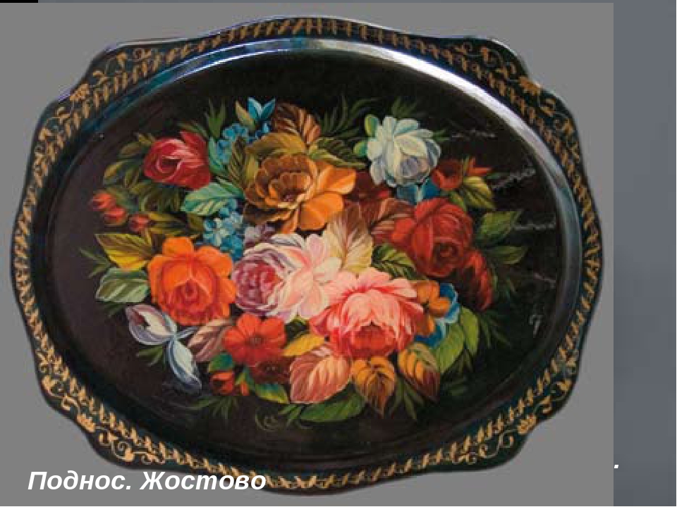 “Жостово” – народный промысел XIX века росписи на лакированных металлических подносах из России.