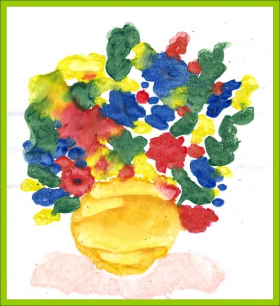 Специально для меня Рита рисовала на пленке цветы в вазе. Полученый отпечаток я помогла ей обвести, вот что получилось.