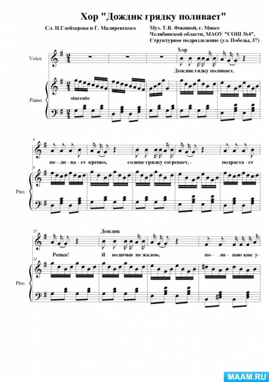 Ноты для солистов, хора (вокального ансамбля) и фортепиано.