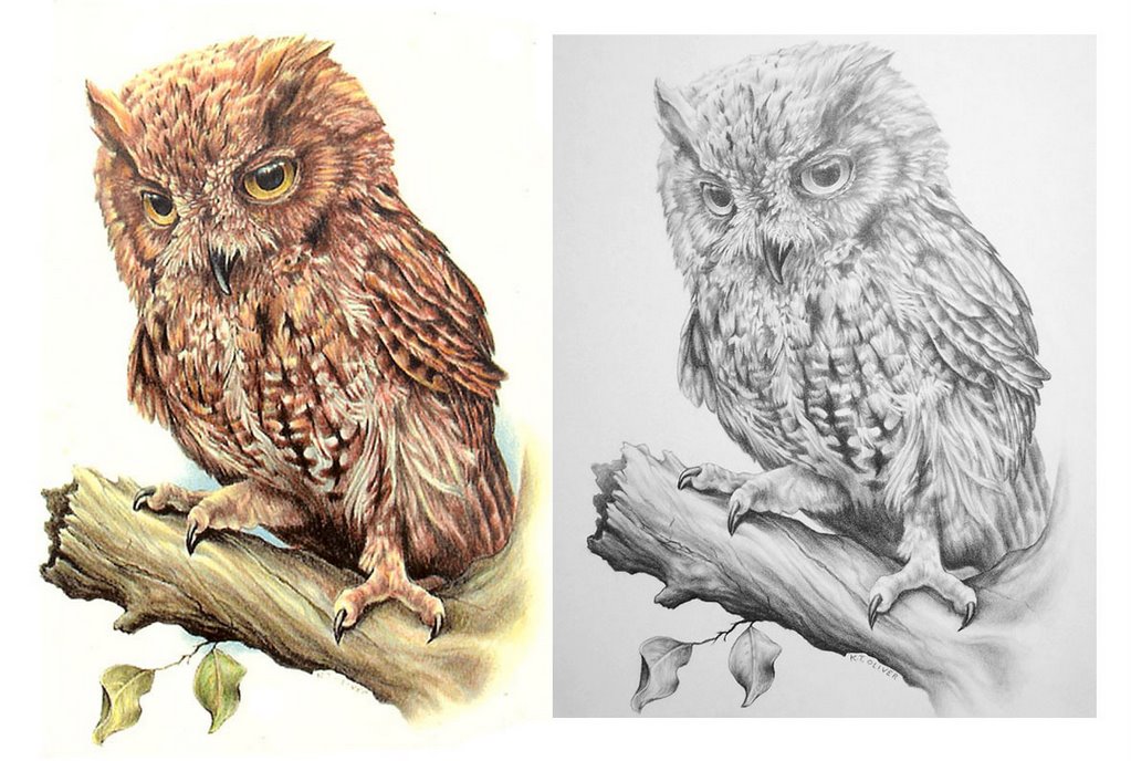 Мы почти нарисовали сову карандашом. Не забудьте – это многочасовая работа, и быстро она не получится. Но вот она близится к завершению. Осталось убрать грязь от карандаша и дорисовать ухо совы.