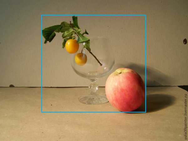 Согласитесь, понять пропорции, уже когда мы выделили целое, намного проще! Сначала заключаем в прямоугольник фужер вместе с ягодами, они у нас составляют единый объект.