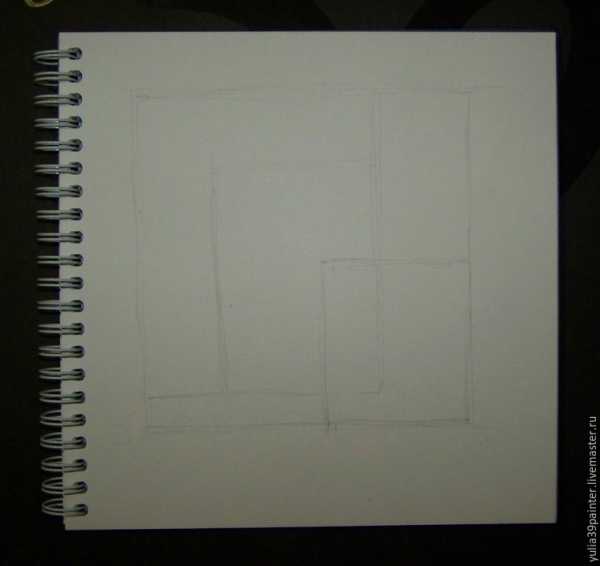 Давайте перенесем нашу композицию на плоскость бумаги (или планшета) с учетом отступов по бокам (как сверху-снизу, так и слева-справа). Размеры композиции определяются с помощью глазомера.
