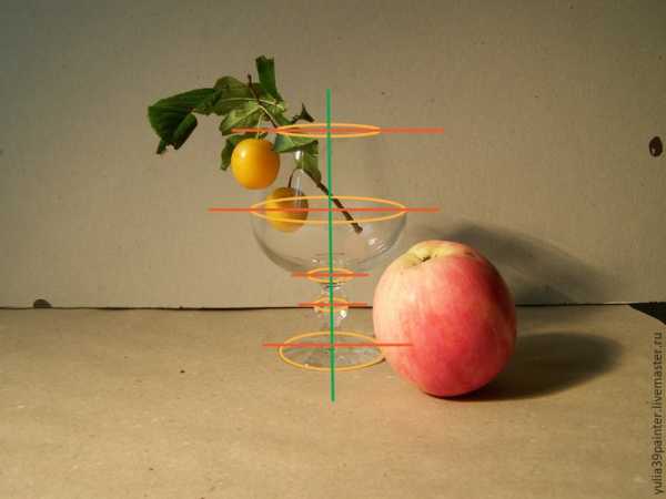 Далее, мы нарисуем яблоко, достроим бокал. И разберемся с трехмерной плоскостью и линейной перспективой.